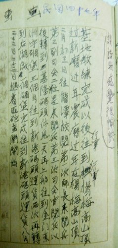 八月二十三日,雖然季節是初秋,卻使人有比夏天還酷熱的感覺,強烈的太陽照射在身上,使人昏腦,更為使共匪神經錯亂,盤踞在廈門迄圍頭一帶海岸的匪砲兵,就是在是日十八時三十分,心不由主,向我金門、烈嶼、大擔、二擔等島,開始全面瘋狂射擊,是時我正在指揮所與副團長研究匪情,從東方傳來震耳欲聾的猛烈砲聲,初以為友軍演習,待至赴就近高地瞭望,先後發現太武山、新頭、烈嶼、珠山等處,煙雲籠罩,判定匪砲向我全面射擊,隨即趕返指揮所,以電話飭令所屬部隊長作防砲擊緊急措施後,旋即接獲第一營胡營長錫武報告:該營於十八時三十分,在新頭碼頭卸運軍品遭受匪機匪砲突襲,傷亡官兵六十六員,實使人哀悼痛惜,甚至涔涔淚下,本欲親自前往撫慰,因應變責任在身,只有派于副主任蜀堂代為前往處理。匪瘋狂射擊,歷兩小時之久,發彈五萬餘,彈痕遍及全島各處,我集結地區,官兵藉簡易土洞掩蔽,一無傷亡。在是日匪向我瘋狂射擊時,我除與上級友軍保持密切連繫外,處理情況,並隨時查詢所屬部隊有無傷亡。在是晚,我為了應變,飭令所屬部隊整裝待旦。